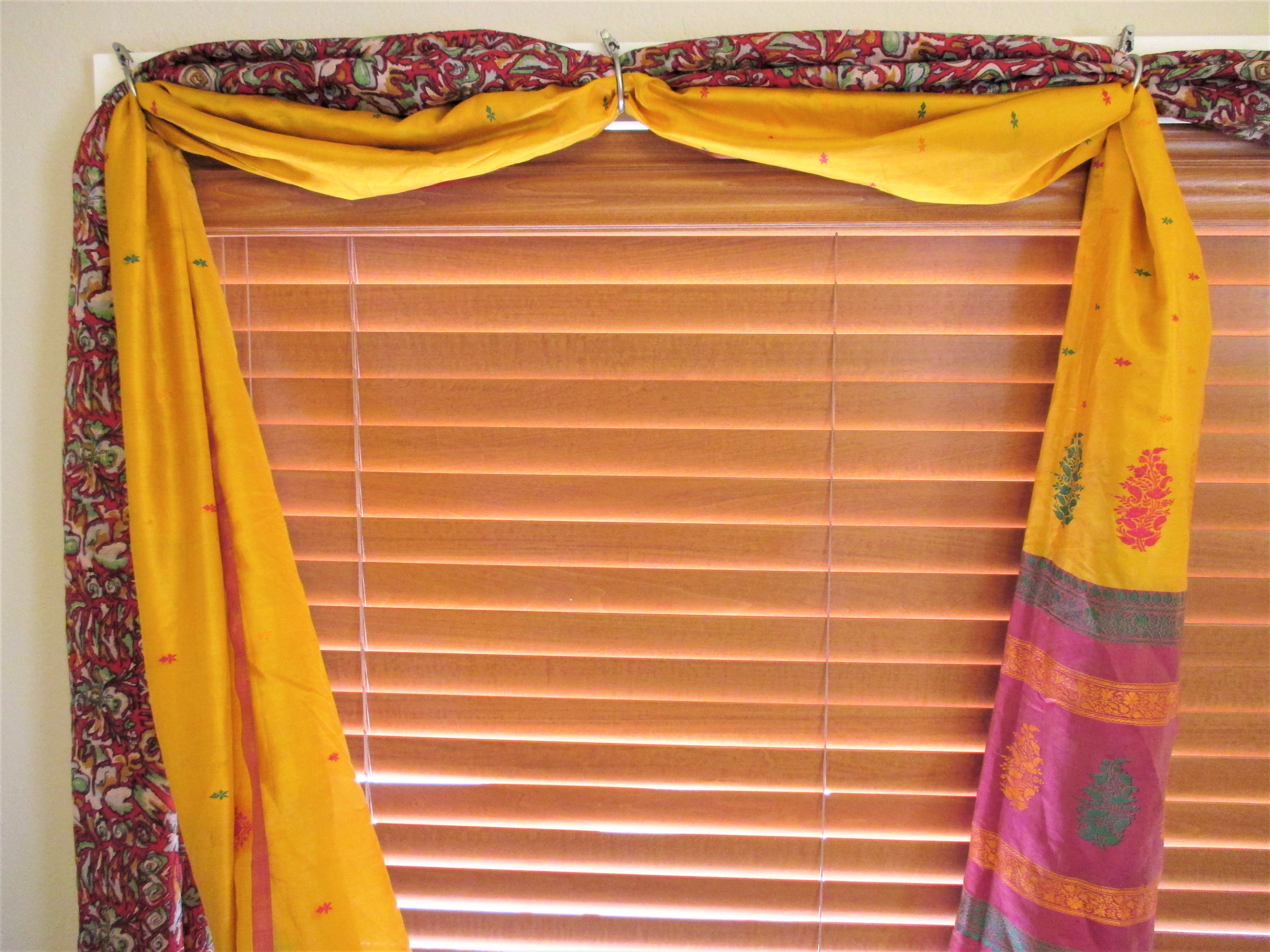Hanging Vintage Saris as Curtains Without a Curtain Rod