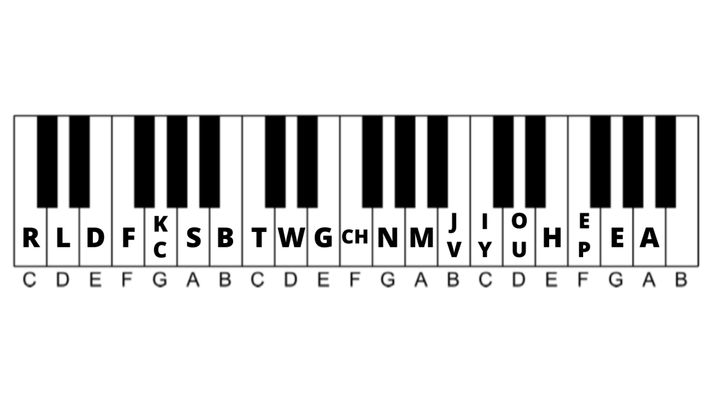 I assigned each sound a note on the piano using the key of C Major. The piano chart on the left was used for the second passage as it had two different phonetic E sounds I wanted to include.