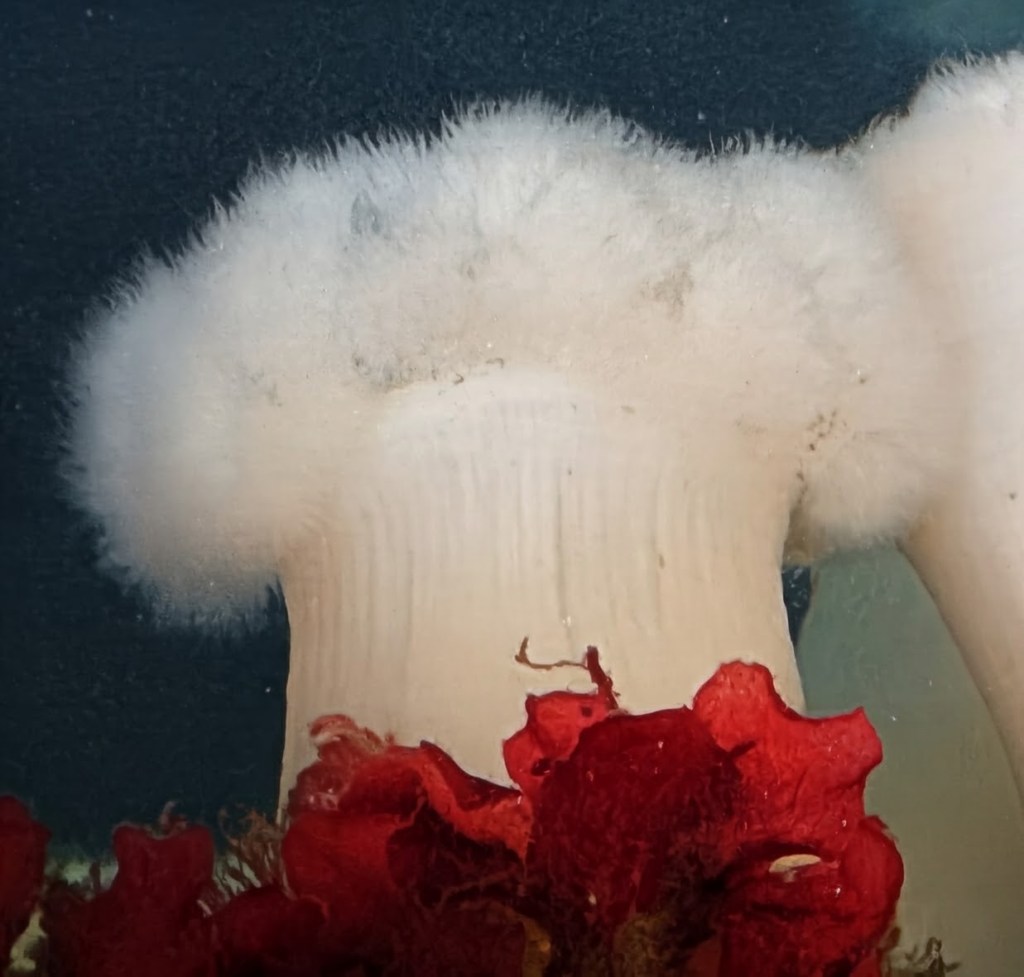 - Plumose Anemone: The giant plumose anemone is commonly found growing in large colonies on the undersides of docks and pilings. It is our largest sea anemone and grows to three feet tall.